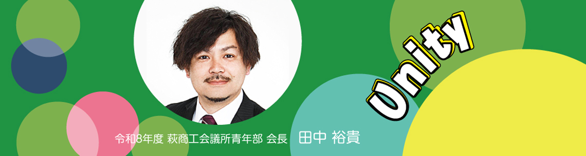 令和8年度萩商工会議所青年部第58代会長を務めさせていただく田中裕貴です。どうぞよろしくお願い申し上げます。